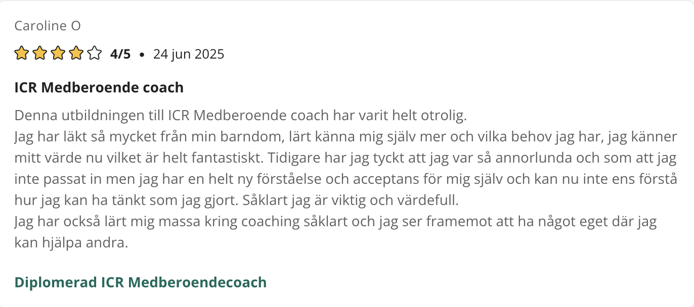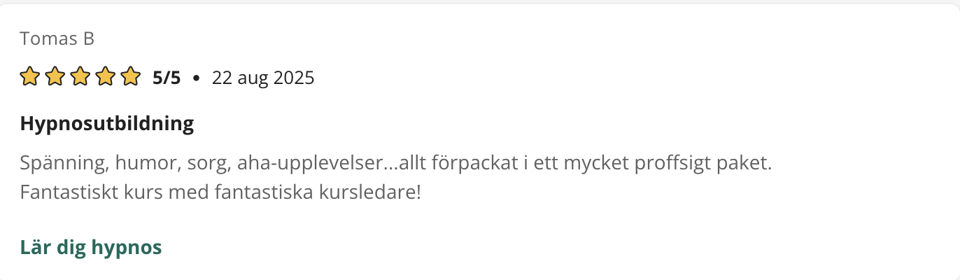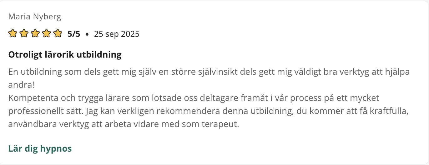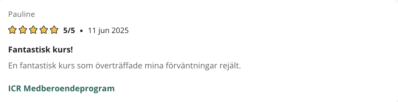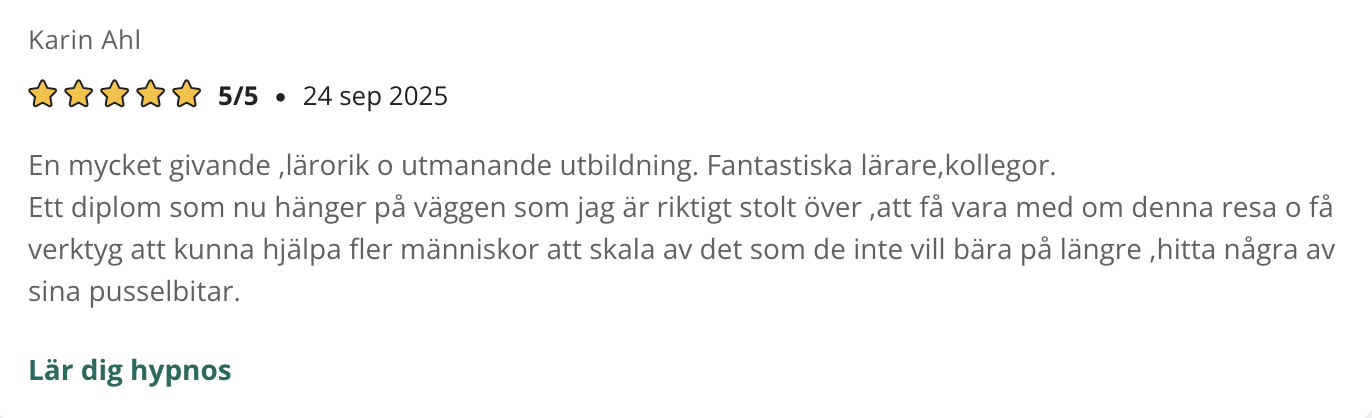 På den här sidan finner du referenser som tycker till om våra kurser, utbildningar eller andra tjänster. Samtliga texter är godkända av respektive person för publicering. De är hämtade ursprungligen från kurser.se samt studier.se där elever kan ge sina omdömen.