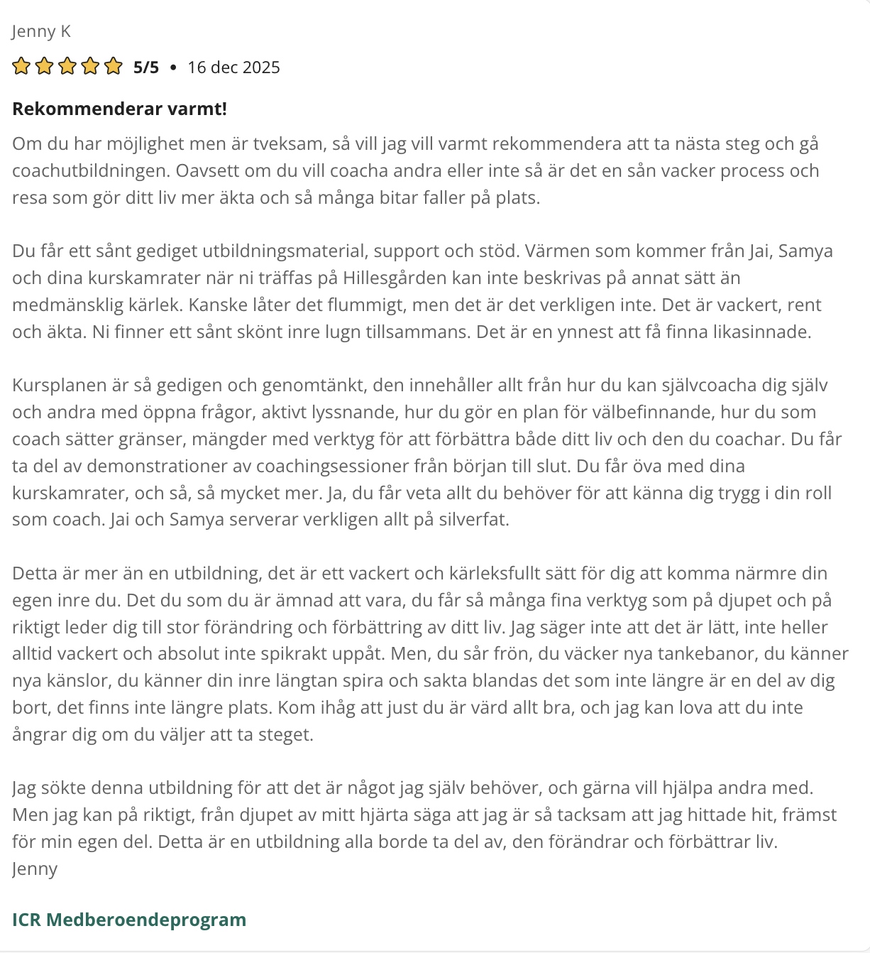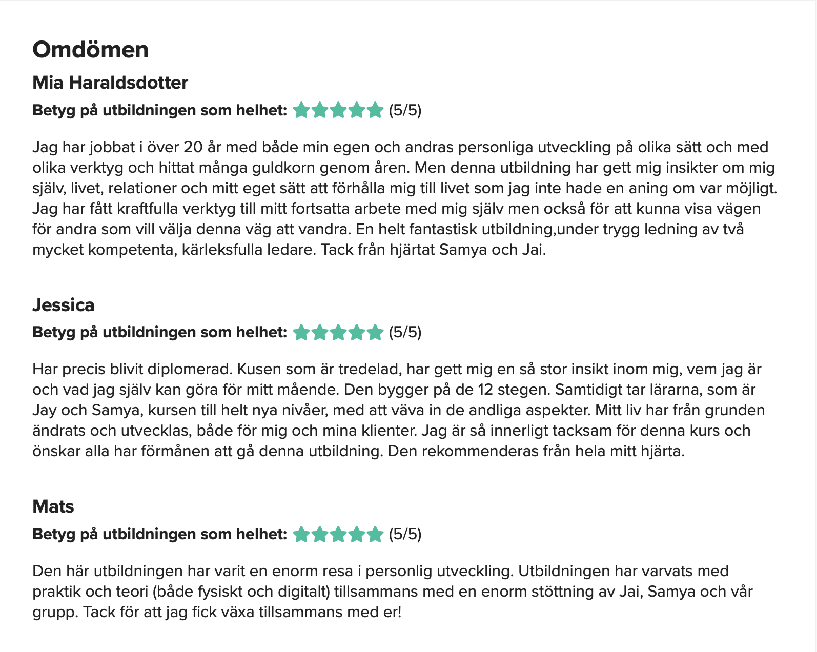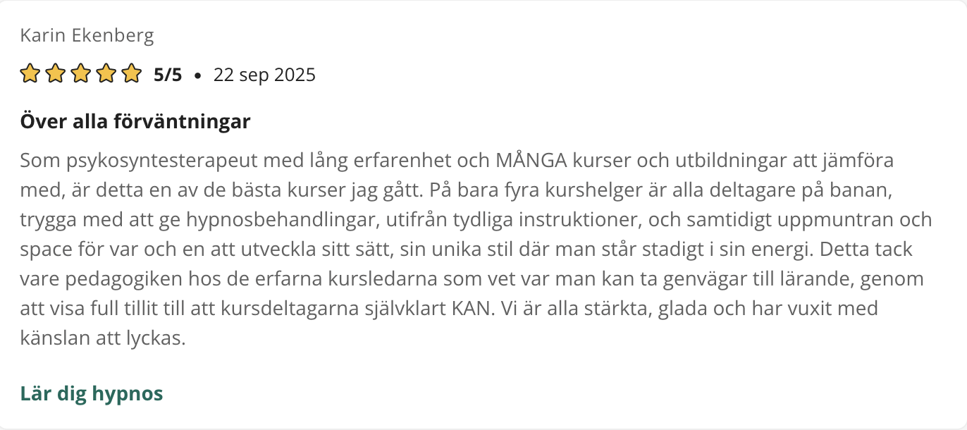 På den här sidan finner du referenser som tycker till om våra kurser, utbildningar eller andra tjänster. Samtliga texter är godkända av respektive person för publicering. De är hämtade ursprungligen från kurser.se samt studier.se där elever kan ge sina omdömen.